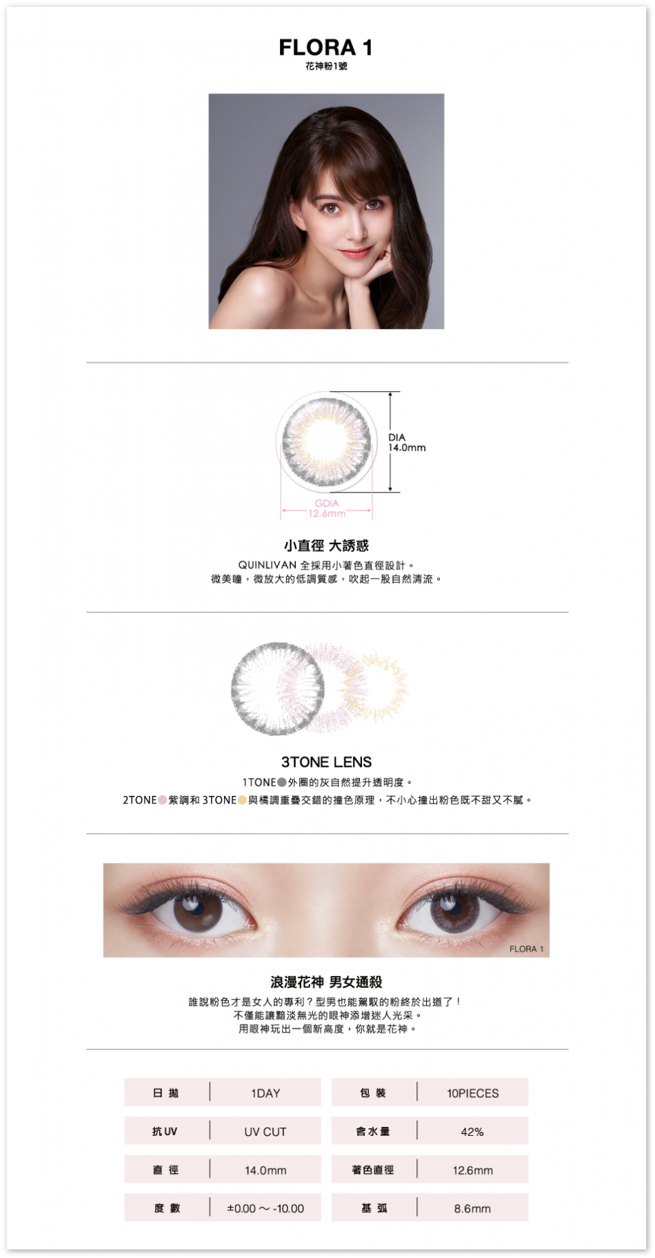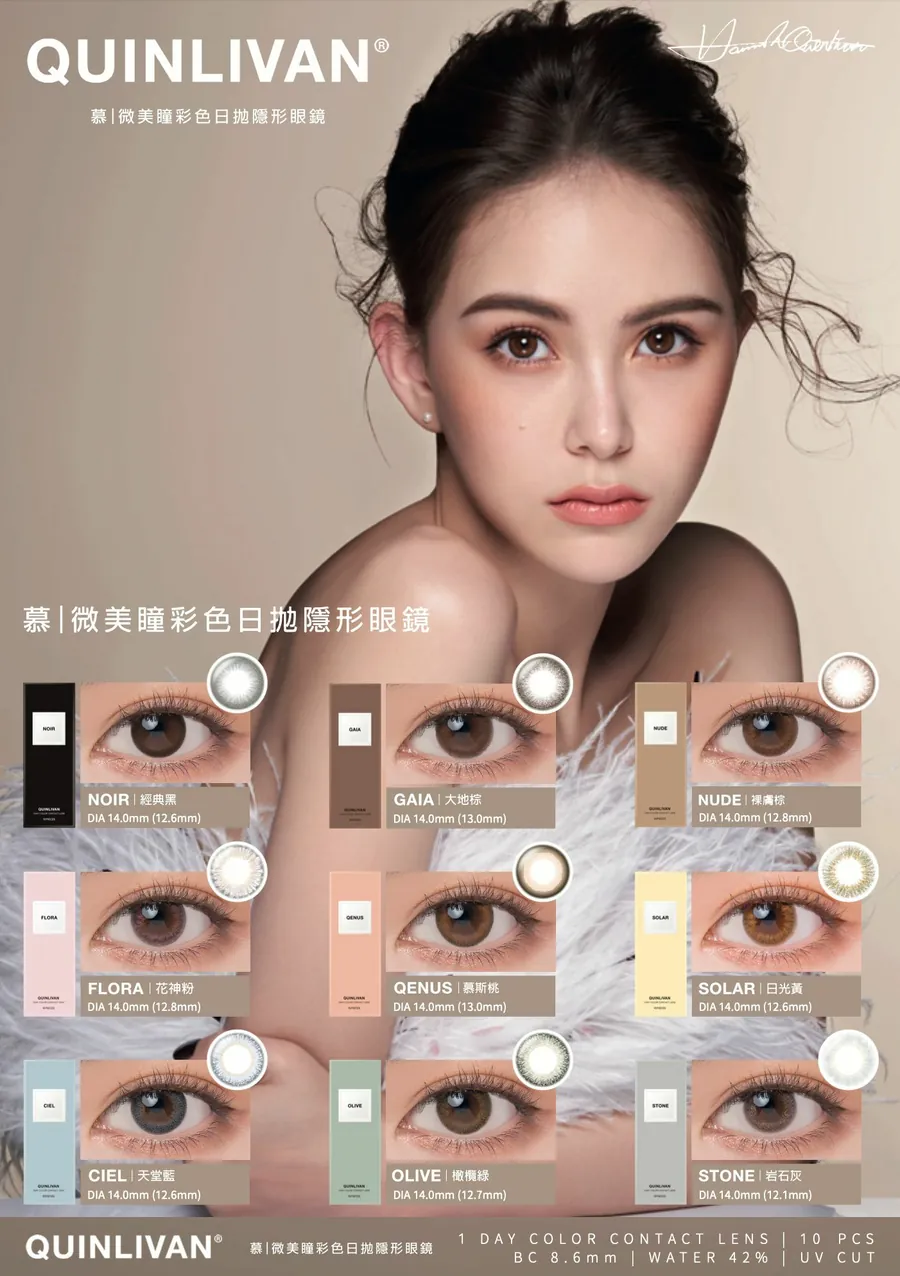 < 此商品不適用於全店9折優惠 > \ 買2盒 $100/1 買4盒 $95/1 / 如需混款 請使用CODE 2盒 [ quin02 ] 4盒[ quin04 ] 逢星期一15:00截單,需預訂約3-5個工作天 ⊹ 直徑:14.0mm 著色直徑:12.6mm 含水量:42% 弧度:8.6mm UV:UV CUT 📌雙眼不同度數請選購2盒 購買前請先確保已細閱購物需知🙌🏻